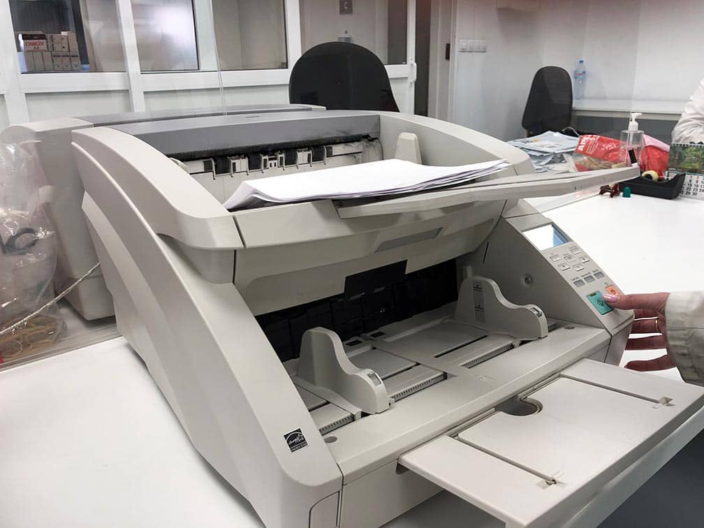 Se realiza la digitalización de los lotes documentales mediante escáneres de alta velocidad que permiten la captación de documentos en blanco y negro o color, con alta resolución, detección de la orientación del texto o mejora de texto, entre otras cuestiones.